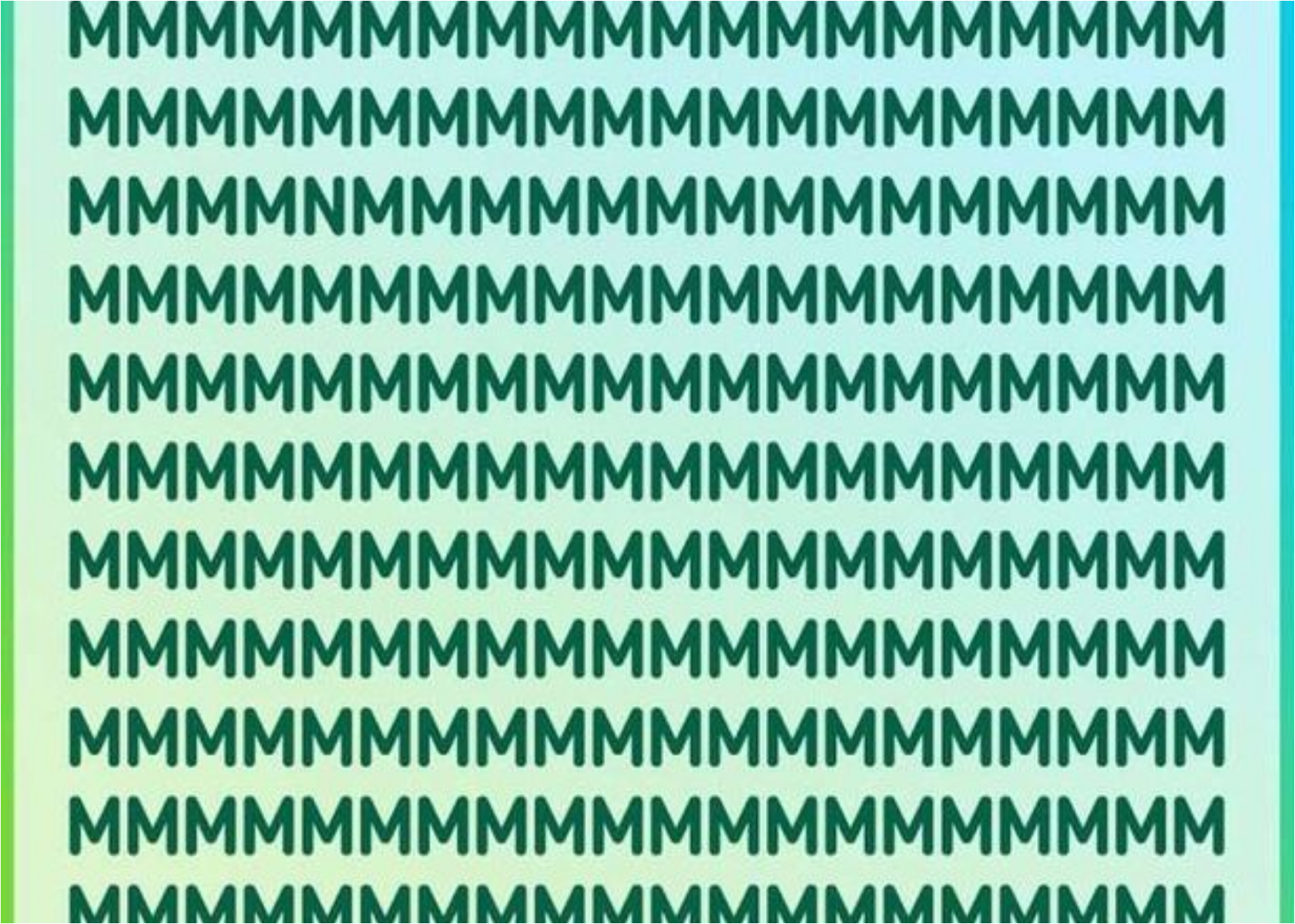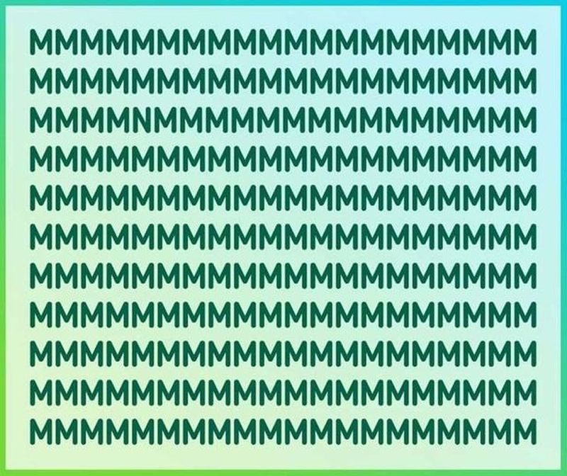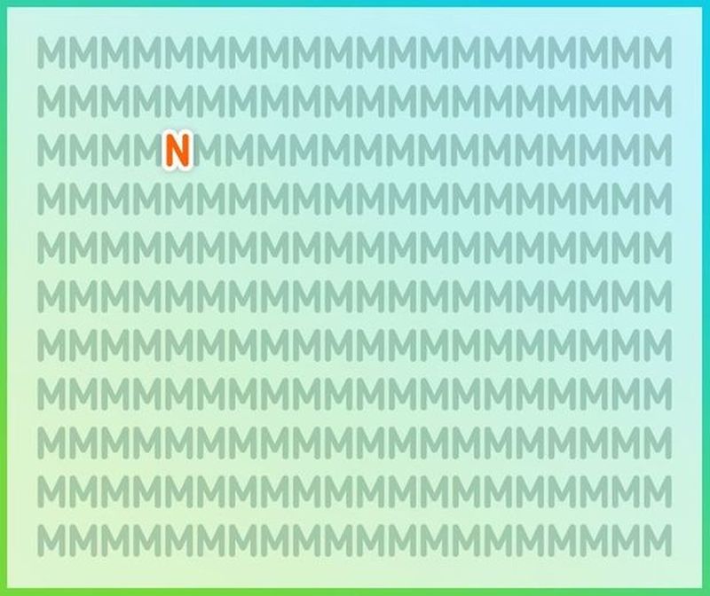 În acest puzzle uluitor, vei vedea 11 rânduri ale literei M, dar provocarea ta este să găsești N-ul ascuns printre ele.
