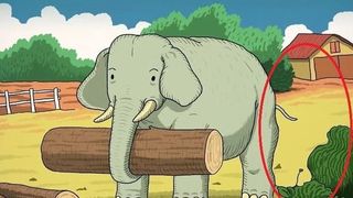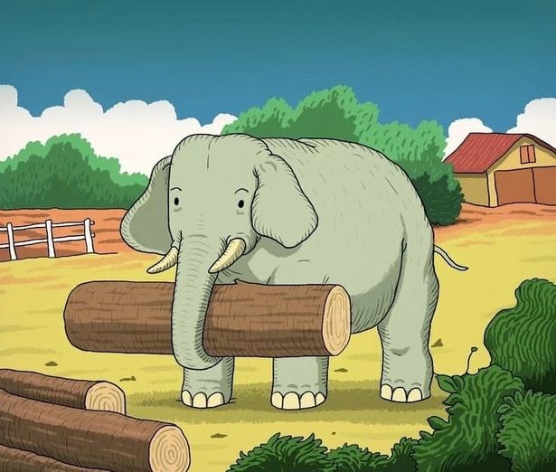 Întrebarea e simplă și clară: poți observa capul de cal ascuns în imaginea cu elefantul care cară lemne de mai jos?