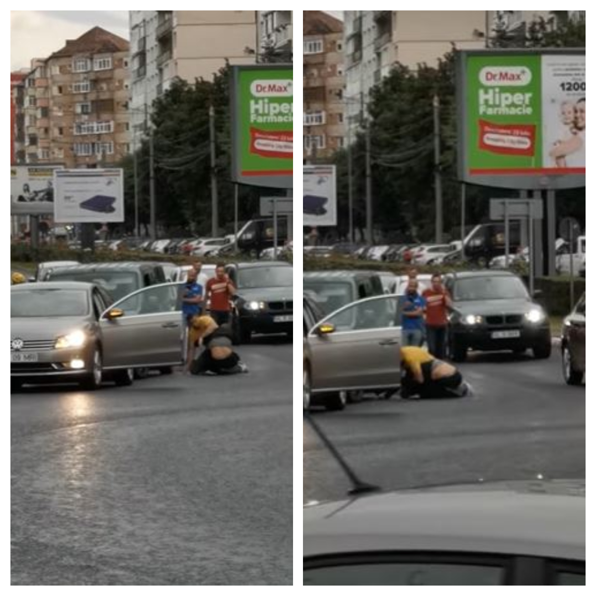 În imagini se poate vedea cum cei doi au coborât din mașini și s-au luat la bătaie. Aceștia s-au trântit la pământ, în timp ce alți conducători auto, martori la eveniment, încercau să-i despartă.