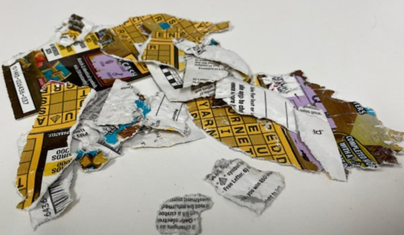 În ciuda stării biletului, oficialii loteriei au decis să continue și să-l pună cap la cap ca pe un puzzle. Ei au descoperit curând că „puzzle-ul” la care lucrau era un bilet de 3 USD pentru jocul Pharaoh’s Gold Crossword. Destul de curând, ei au confirmat, de asemenea, că biletul a fost câștigător și au trimis plata de 8 dolari celor doi soți.