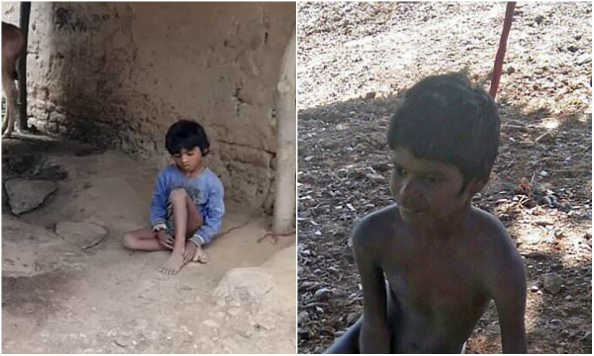 Umesh, in varsta de 8 ani, din Rajasthan, un stat din nordul Indiei, a ramas in grija bunicilor dupa ce parintii lui au murit in urma cu cinci ani. Bunicul lui a declarat ca baiatul era violent si obisnuia sa fuga de acasa, motiv pentru care a decis sa il lege cu o funie, in grajd.