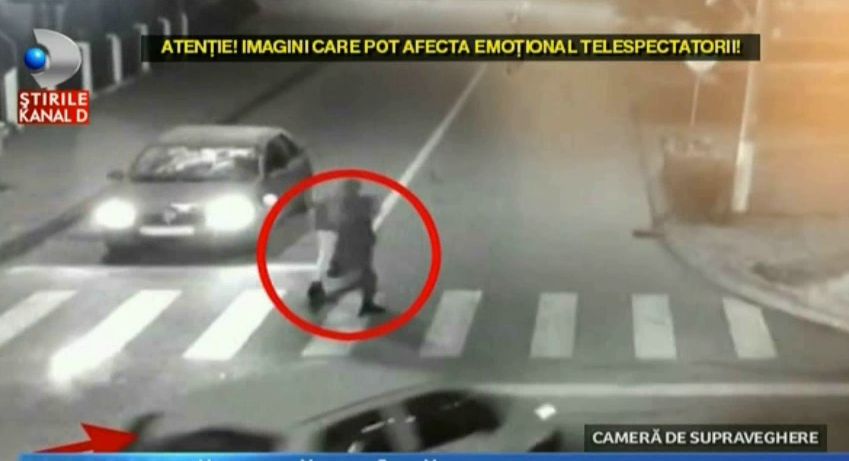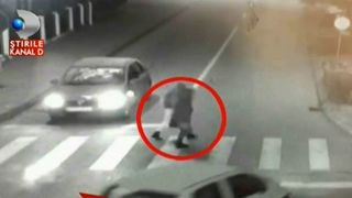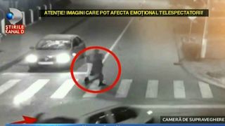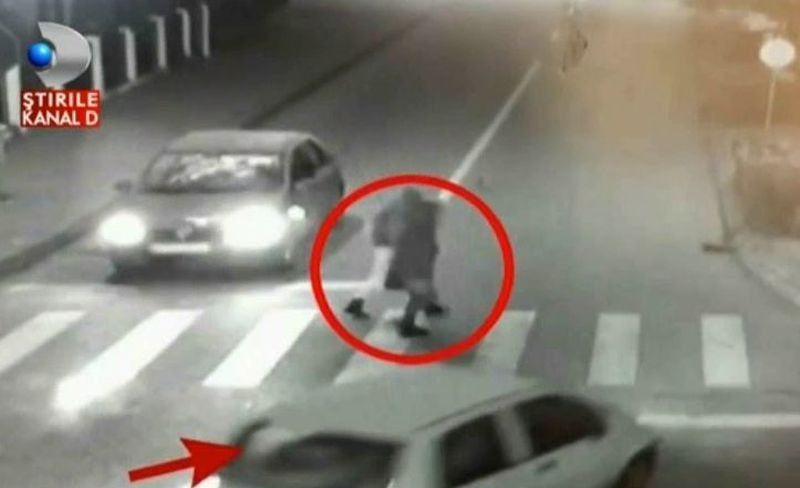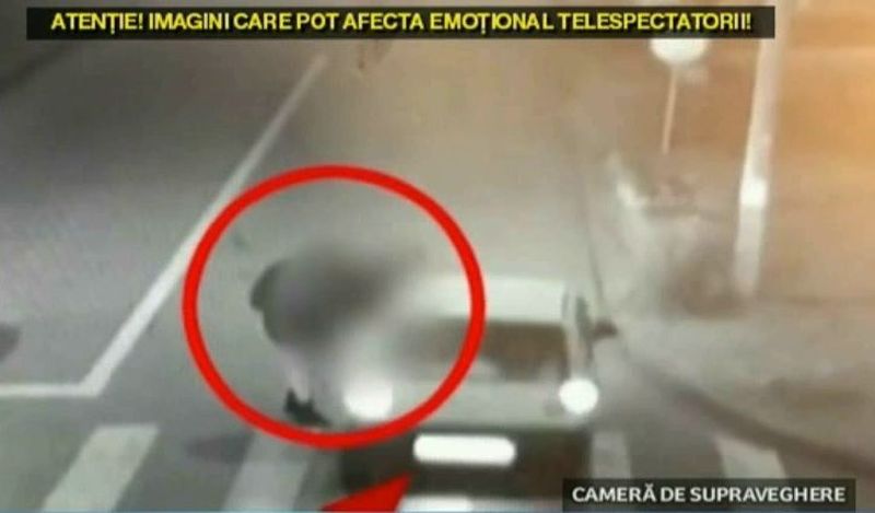 Numai ca in momentul cand cei doi pietoni au ajuns la jumatatea soselei, de pe un drum lateral apare un alt automobil de culoare deschisa si, fara sa franeze, vireaza stanga si-l loveste pe unul dintre tineri.