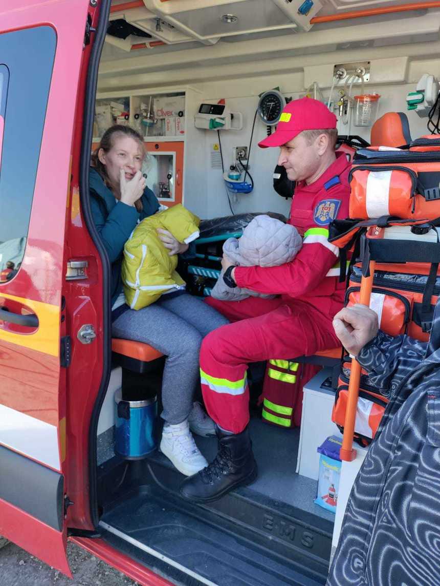 În urmă cu foarte puţin timp, echipajul ambulanţei, mama şi copilaşii au intrat în România prin Punctul de Trecere a Frontierei Albiţa, urmând a fi duşi în Compartimentul de Primiri Urgenţe a Spitalului Municipal "Dimitrie Castroian" Huşi.