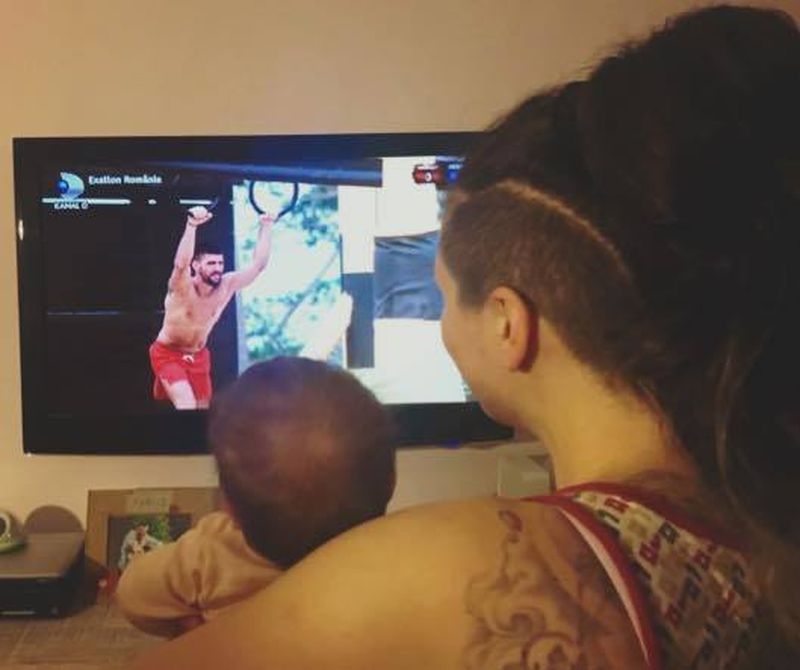 "Doi ochi mari si doi ochi mici te urmaresc cu multa iubire! Bravo tati!", a scris Diana pe pagina de Facebook la o poza cu ea si cu Anya in timp ce il urmareau la televizor pe Valentin.