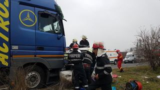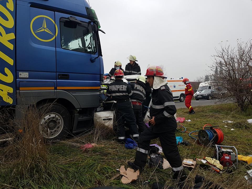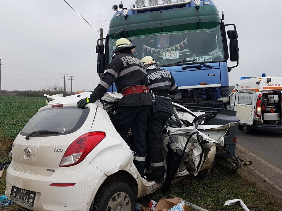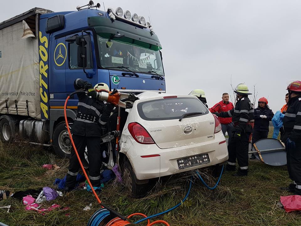 Potrivit politistilor, accidentul a avut loc dupa ce soferul unui autoturism a intrat pe contrasens, cel mai probabil dupa ce ar fi adormit, iar masina s-a ciocnit violent cu un TIR.