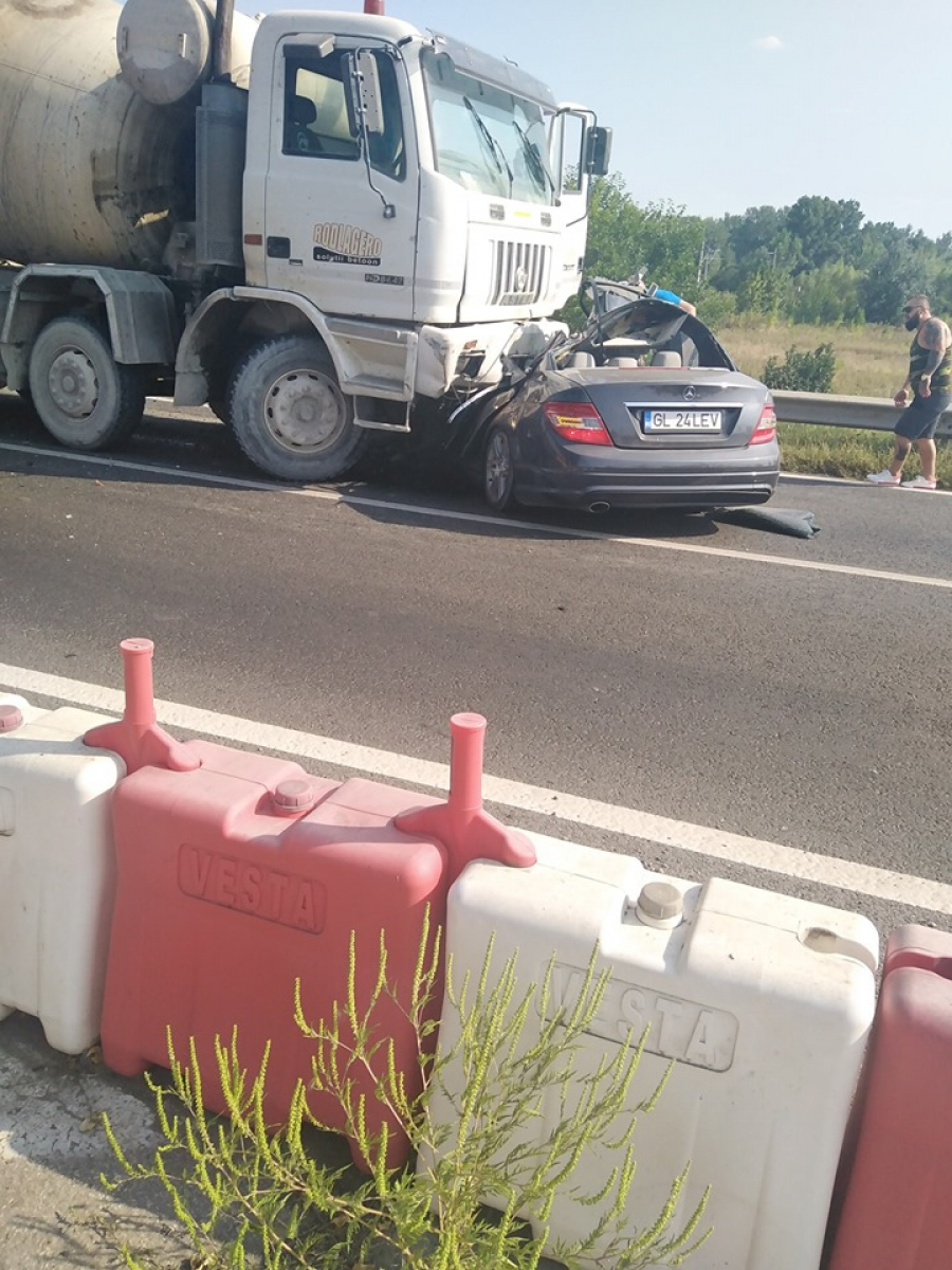 Tânărul de 32 de ani, aflat la volanul unui autoturism marca Mercedes, nu a acordat prioritate de trecere unei betoniere care circula spre Brăila, iar impactul a fost iminent.