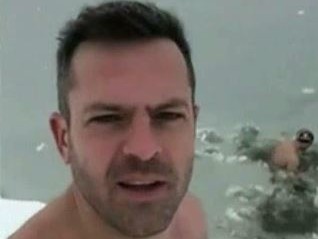 Minute bune, amandoi nici nu clipesc in apa inghetata.