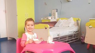 "Anastasia are 3 ani si 3 luni. Cancerul i-a acoperit toata emisfera stanga a creierului, dar ea e puternica si curajoasa.