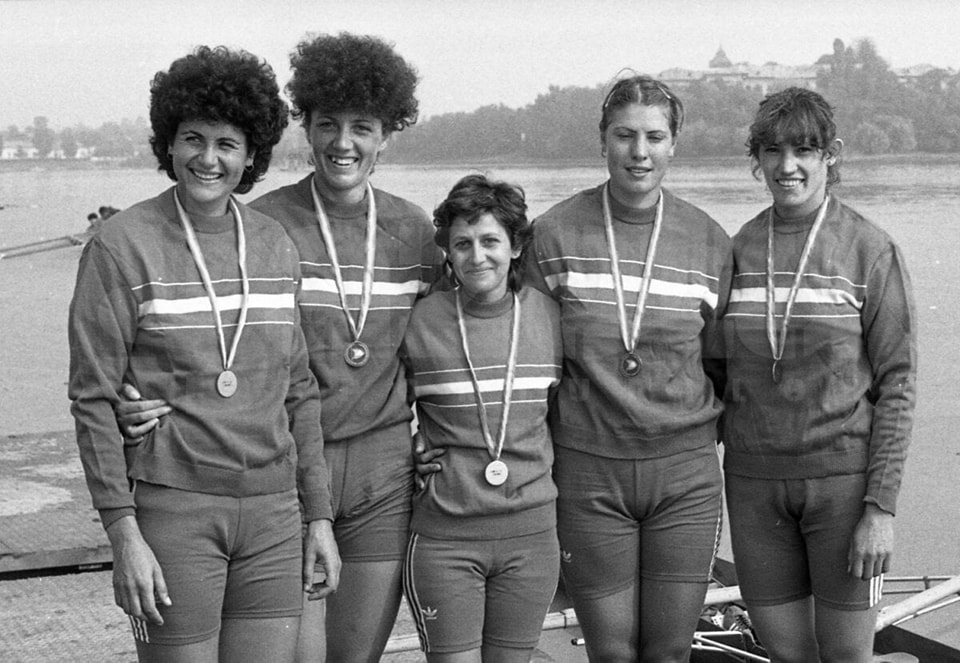 Fosta campioană olimpică şi mondială Ecaterina Oancia Iane, alături de colegele ei din echipa de canotaj