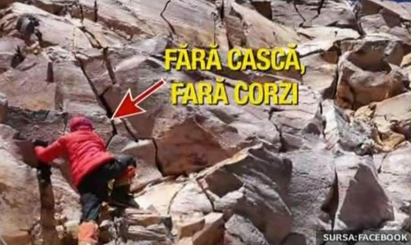 Sunt imagini filmate chiar de tatal Dor Getei, in urma cu doi ani. Fata e filmata urcand un muinte abrupt fara hamuri si fara casca de protectie.