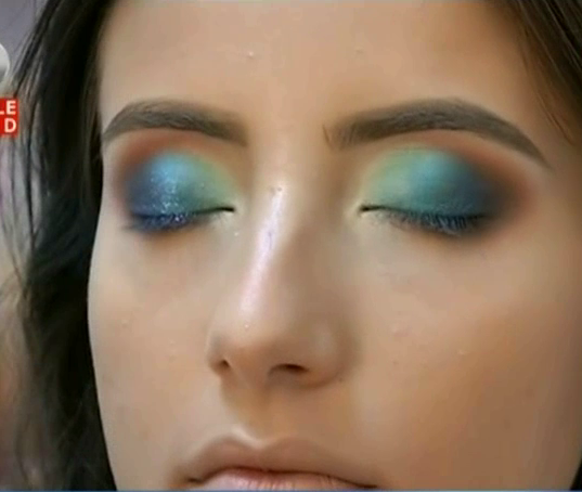 Adina Zotinca, make-up artist: ”Ca sa completam machiajul si sa-I conferim o nota coloristica, o sa folosim o nuanta de albastru, un albastru azuriu, pe care o sa-l asezam la granita dintre ecru si maro”.