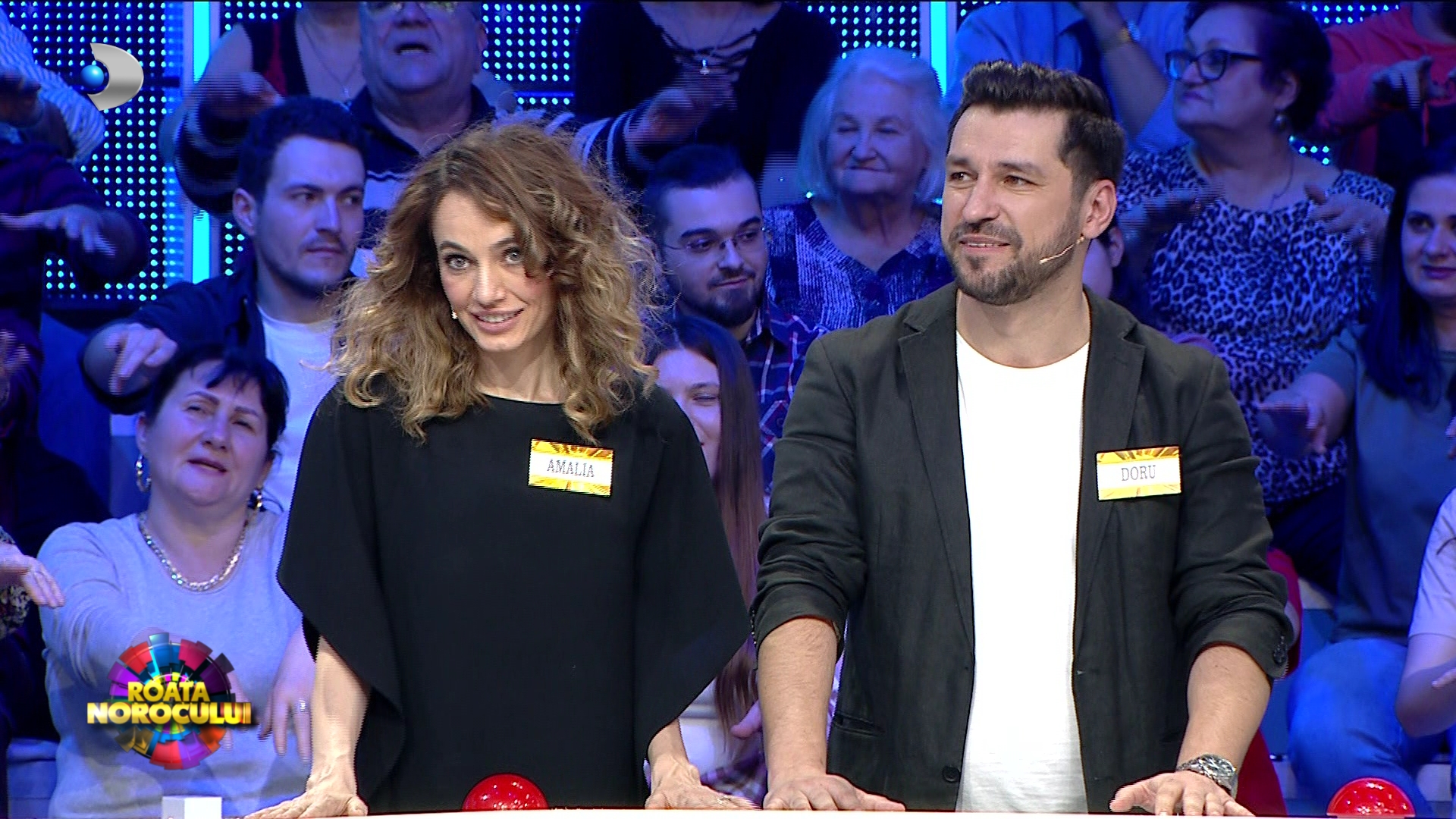 Bucurie fără margini aseară, în platoul emisiunii “Roata Norocului”, de la Kanal D, când Doru Todoruț și Amalia, iubita artistului, au câștigat o serie de produse electronice și electrocasnice, pentru o familie aflată în dificultate.