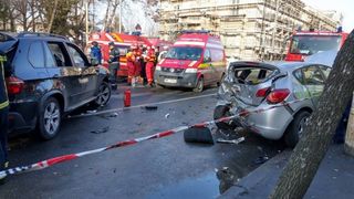 "Din primele date se pare că cei doi conducători auto ar fi pierdut controlul asupra direcţiei de mers şi au avariat în prima fază un stâlp de iluminat, apoi două clădiri", arată sursa citată.