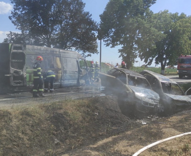 Patru persoane se aflau în autoturisme și au ieșit cu puțin timp înainte ca mașinile să ia foc.