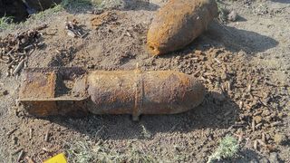 Doua bombe de aviatie cu napalm, datand din cel de-al Doilea Razboi Mondial, au fost descoperite, vineri, in satul Costi, din judetul Galati, la un interval de circa doua ore, de un localnic care lucra cu un utilaj, cele doua proiectile fiind preluate de pirotehnisti pentru detonare controlata.