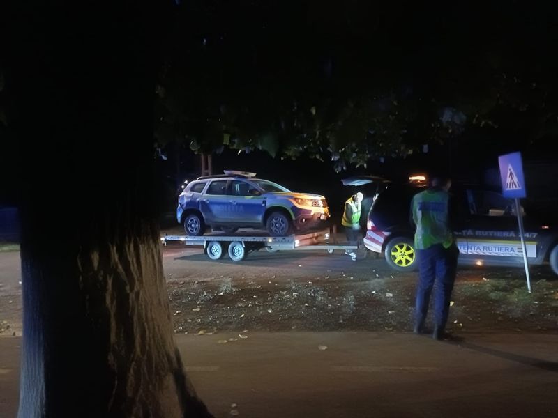 Accident ca în filemele polițist, la Arad. Două mașini de poliție au fost implicate într-un accident neobișnuit în localitatea arădeană Sântana. Patru polițiști au ajuns la spital.