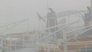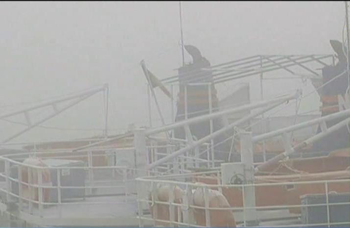 Gheata nu e singurul inamic al navigatorilor! Din aceasta dimineata, o ceata laptoasa a "inghitit" fluviul. Nici un bac nu mai traverseaza Dunarea, la Galati, iar pentru navetisti, s-a pus la dispozitie un impingator!