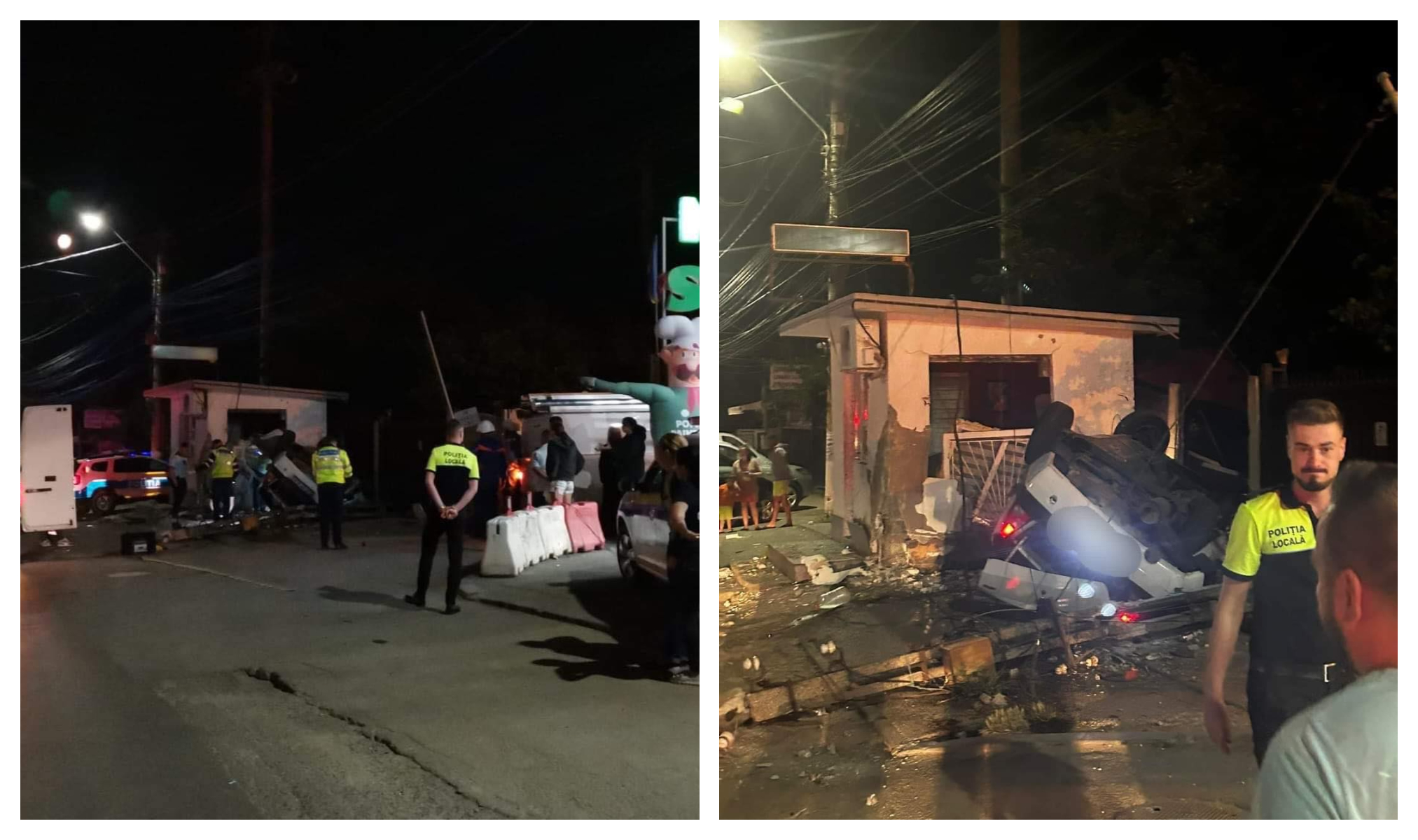 Șoferița a lovit parapetul de pe mijlocul drumului, s-a răsturnat, a doborât un stâlp de electricitate și s-a oprit în gardul unei case. Cablurile de electricitate au căzut peste mașină, făcând intervenția salvatorilor mult mai dificilă.