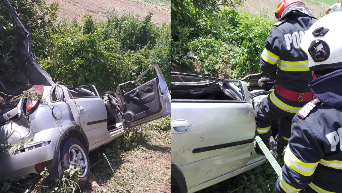"Echipajele operative sosite la fața locului au constatat că în evenimentul rutier a fost implicat un singur autoturism, care era răsturnat, iar două persoane erau încarcerate, inconștiente.