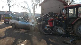 Doi bărbați au murit și altul a ajuns la spital, după ce mașina în care se aflau s-a izbit puternic de un tractor, pe o stradă din Galați.