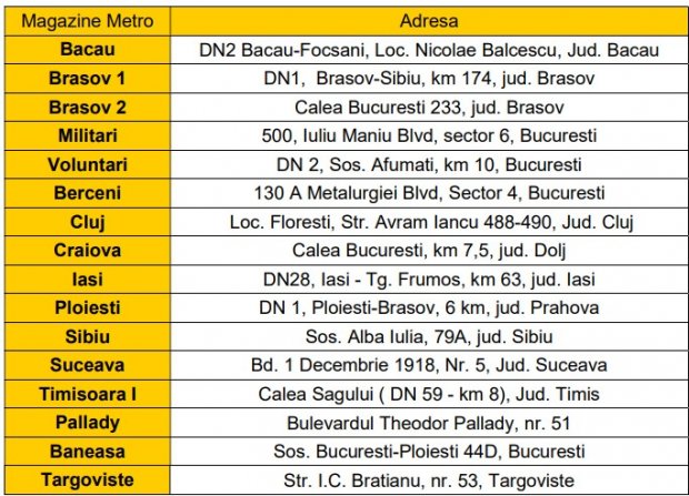 Lista magazinelor METRO