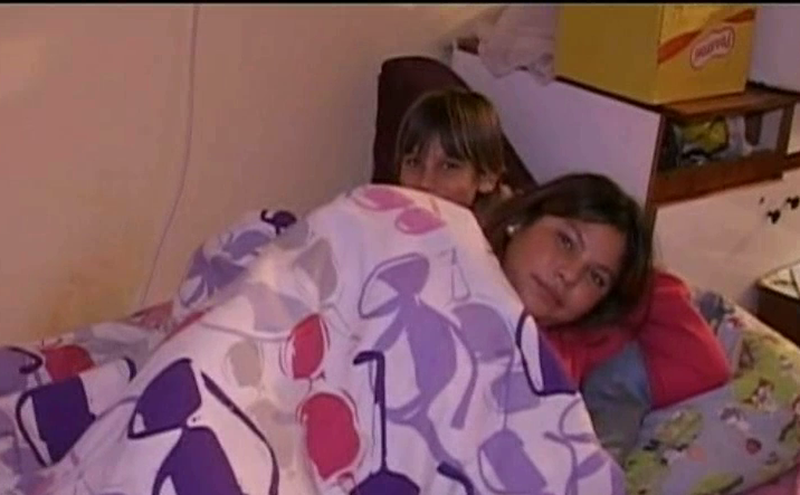 Cele trei fete dorm, impreuna cu bunica si fratele cel mare intr-un pat improvizat.Isi
