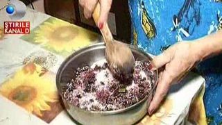 Mai facem si o delicatesa pentru cei mari: afinata. Afinele cu zahar sunt lasate la odihnit cam o saptamana... Pana ajung sa se transforme intr-o pasta aromata.