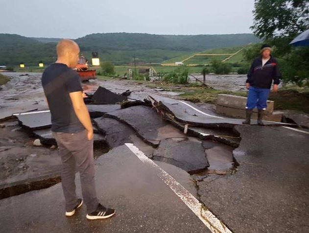 Ploile puternice care s-au abatut in ultima perioada in anumite zone din tara au facut prapad pe Drumul European 581, in judetul Vaslui.