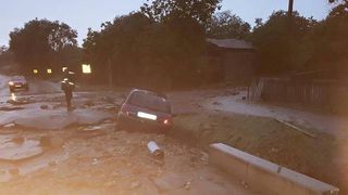 Si mai multe masini care erau parcate in zona au fost luate de ape si purtate pe zeci de metri, fiind avariate.