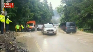 Imaginile vin de pe Valea Prahovei, din dreptul localitatii Posada, unde ploile torentiale aproape ca au blocat drumul spre statiunile montane. Ruperea de nori a dezlantuit suvoaiele de apa din munti, care au navalit cu furie pe carosabil.