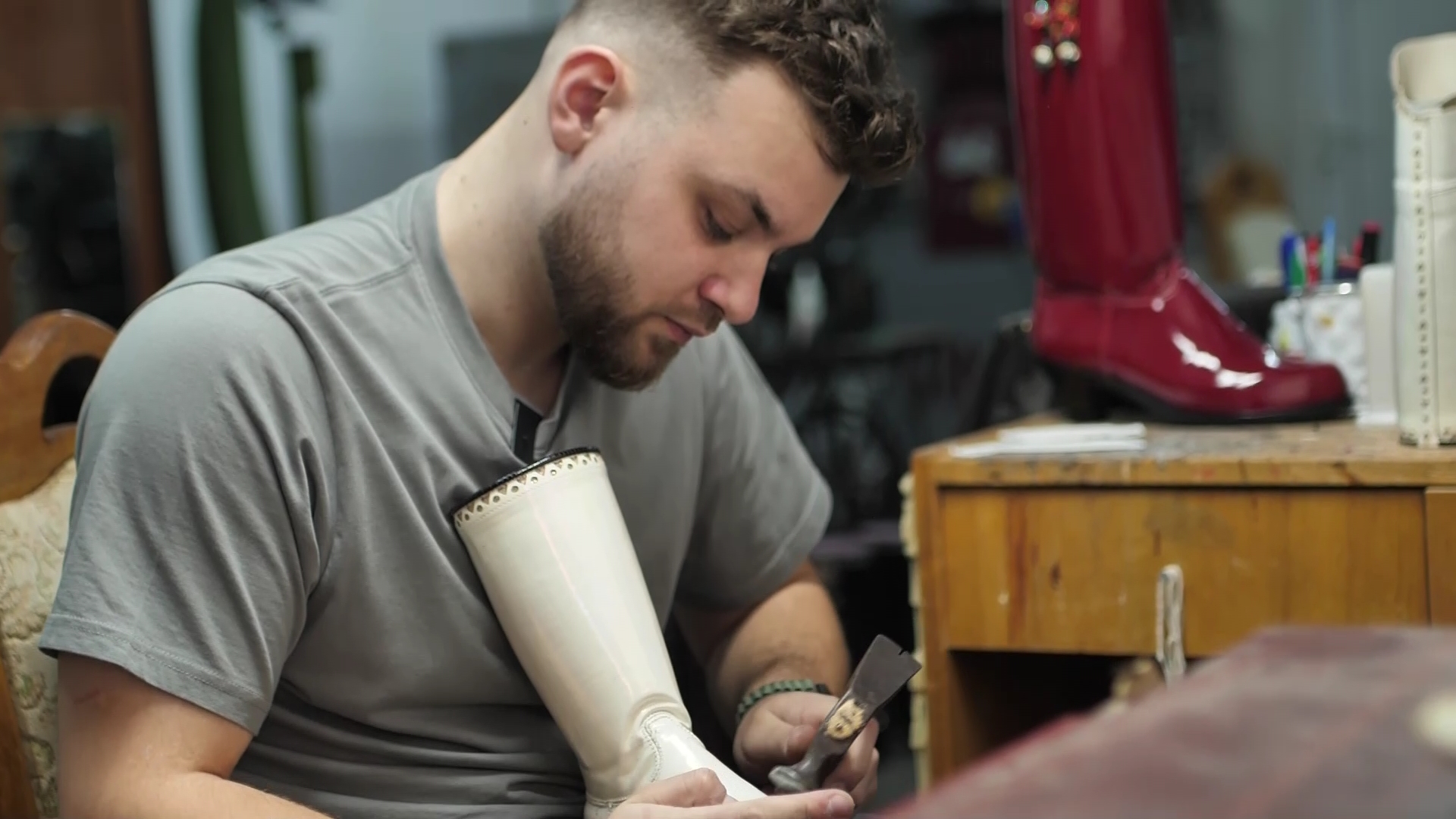 Cizmăria este meșteșugul pe care Raul, tânărul de 23 de ani, l-a moștenit de la tatăl său, din pasiune și dorința de a continua tradiția familiei.