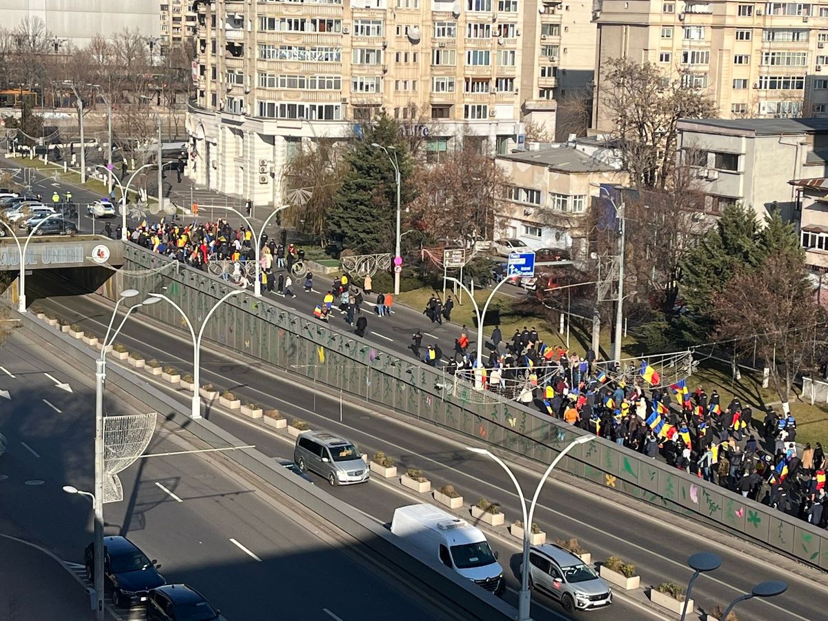 După ce au dansat în hora de Mica Unire, românii au plecat în marș spre Piața Victoriei, iar Călin Georgescu a plecat cu mașina, alături de soția sa, însă nu pentru a lua parte la protestul de după întâlnirea cu susținătorii săi. Cu steaguri în mâini, ovaționând, românii mărșăluiesc în semn de protest pe străzile Bucureștiului.