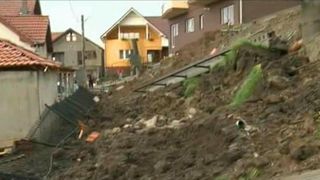 In Sibiu, un zid care ar fi trebuit sa sustina un mal de pamant s-a prabusit din cauza ploii.
