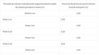 In tabelul de mai jos vezi care este procentul de diminuare al pensiei in functie de anii la care alegi sa te pensionezi.