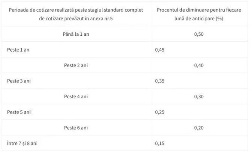 Totusi, exista o problema in acest sens, iar problema este legata de diminuarea pensiei cu un anumit procent, in functie de pensionarea anticipata.