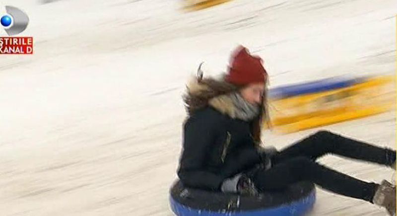 "Va dati si cu sania? Am vrut sa ne luam, dar nu mai sunt disponibile... E aglomerat tare la sanius? Da, da, da"