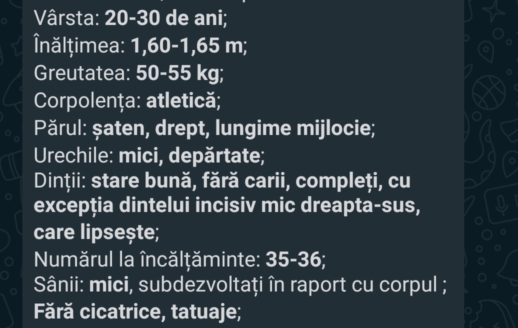 Tânăra găsită incendiată pe un câmp din Giurgiu ar fi avut 20-30 de ani, înălțimea 1,60- 1,65, greutate 50-55 de kilograme. Conform datelor prezentate de poliție, ar fi avut părut șaten, drept, lungime mijlocie.