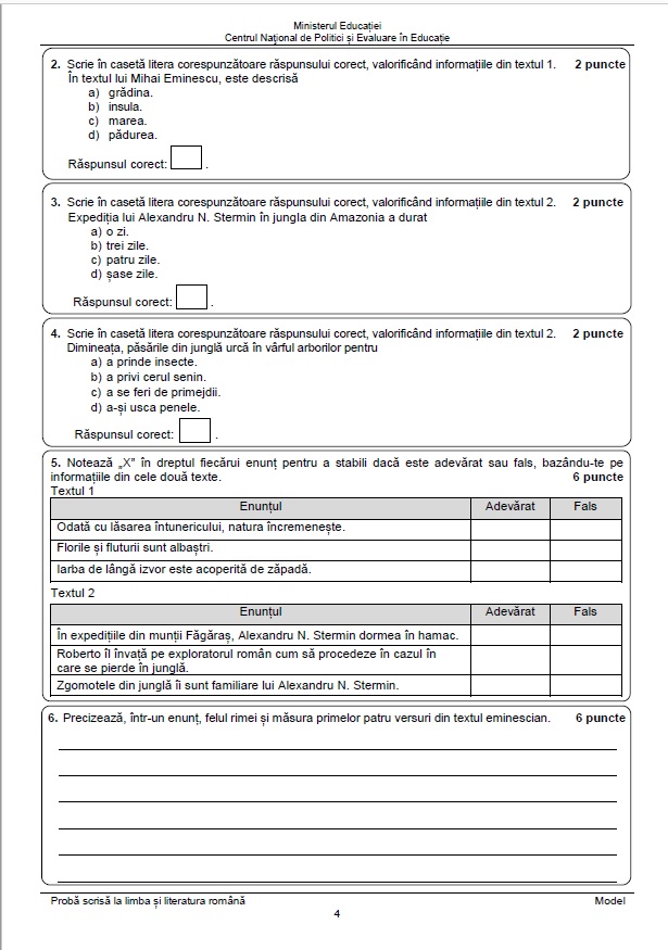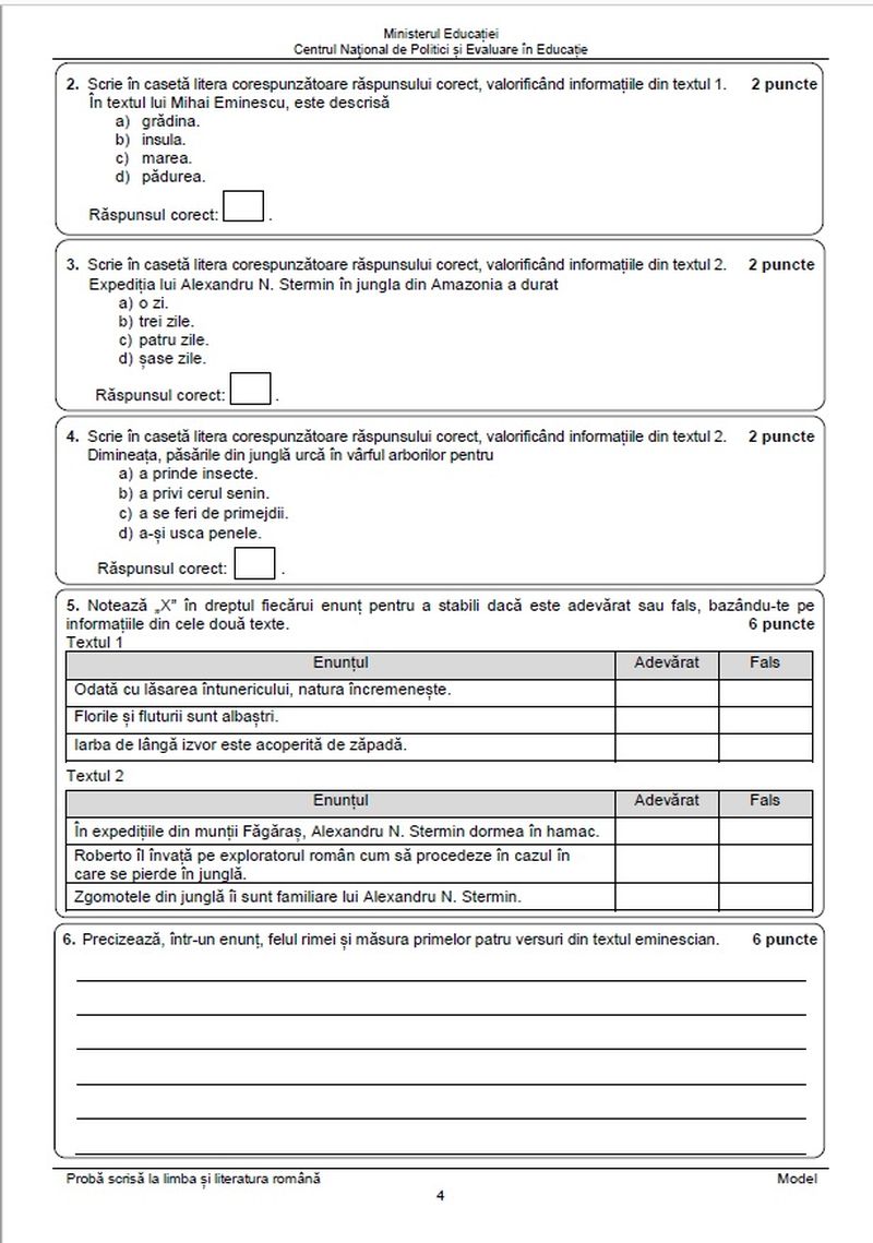 4 din 21 | Edu.ro Simulare Română Evaluare Națională 2023. Cum sunt punctate subiectele?