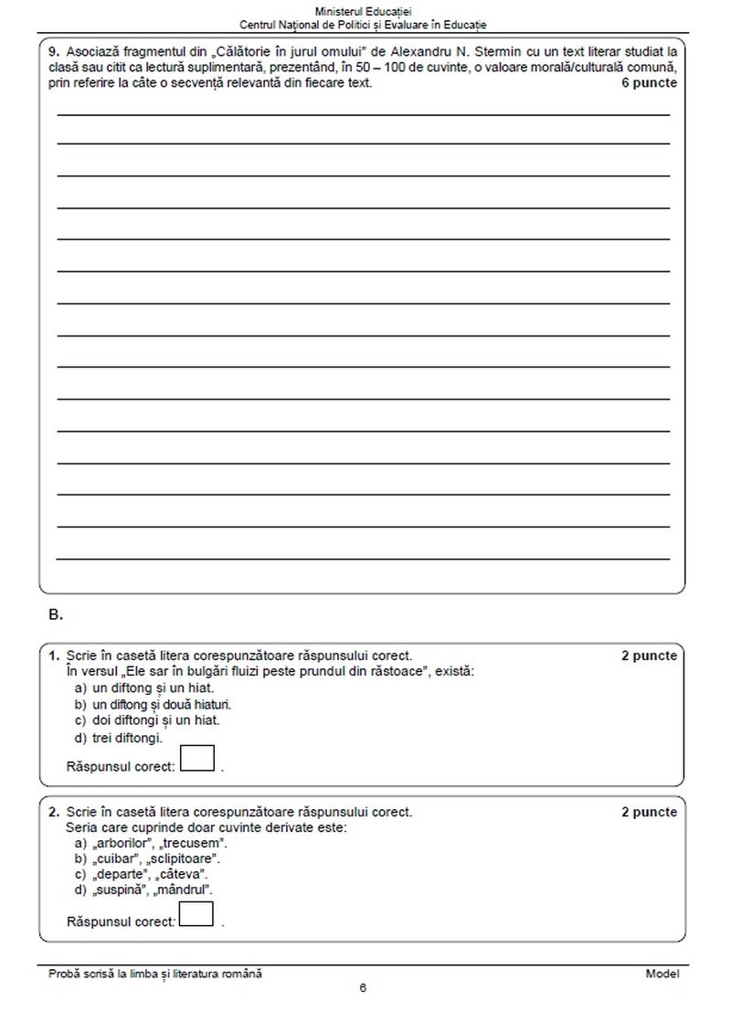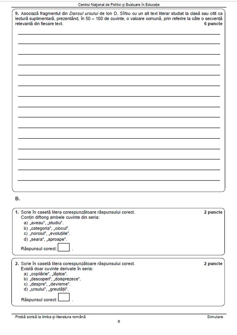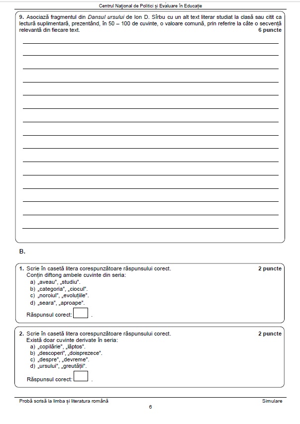 6 din 21 | Edu.ro Simulare Română Evaluare Națională 2023. Cum sunt punctate subiectele?