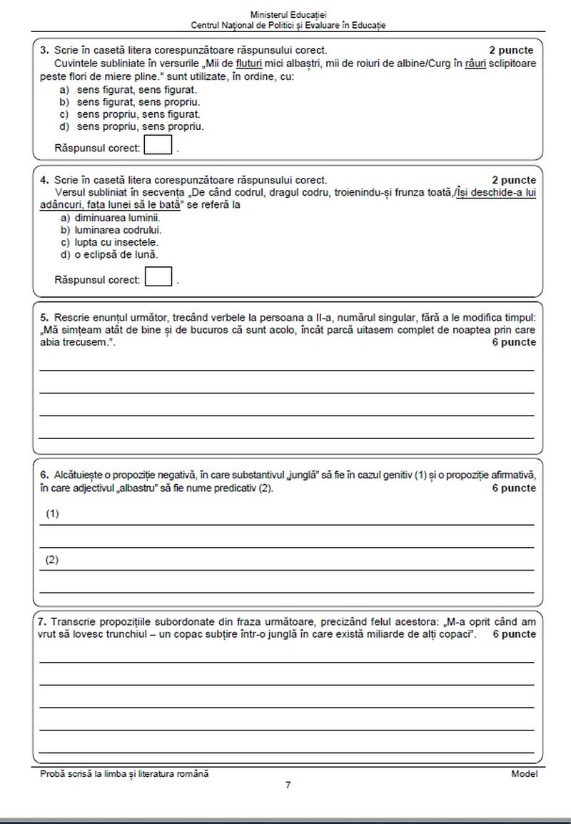 7 din 21 | Edu.ro Simulare Română Evaluare Națională 2023. Cum sunt punctate subiectele?