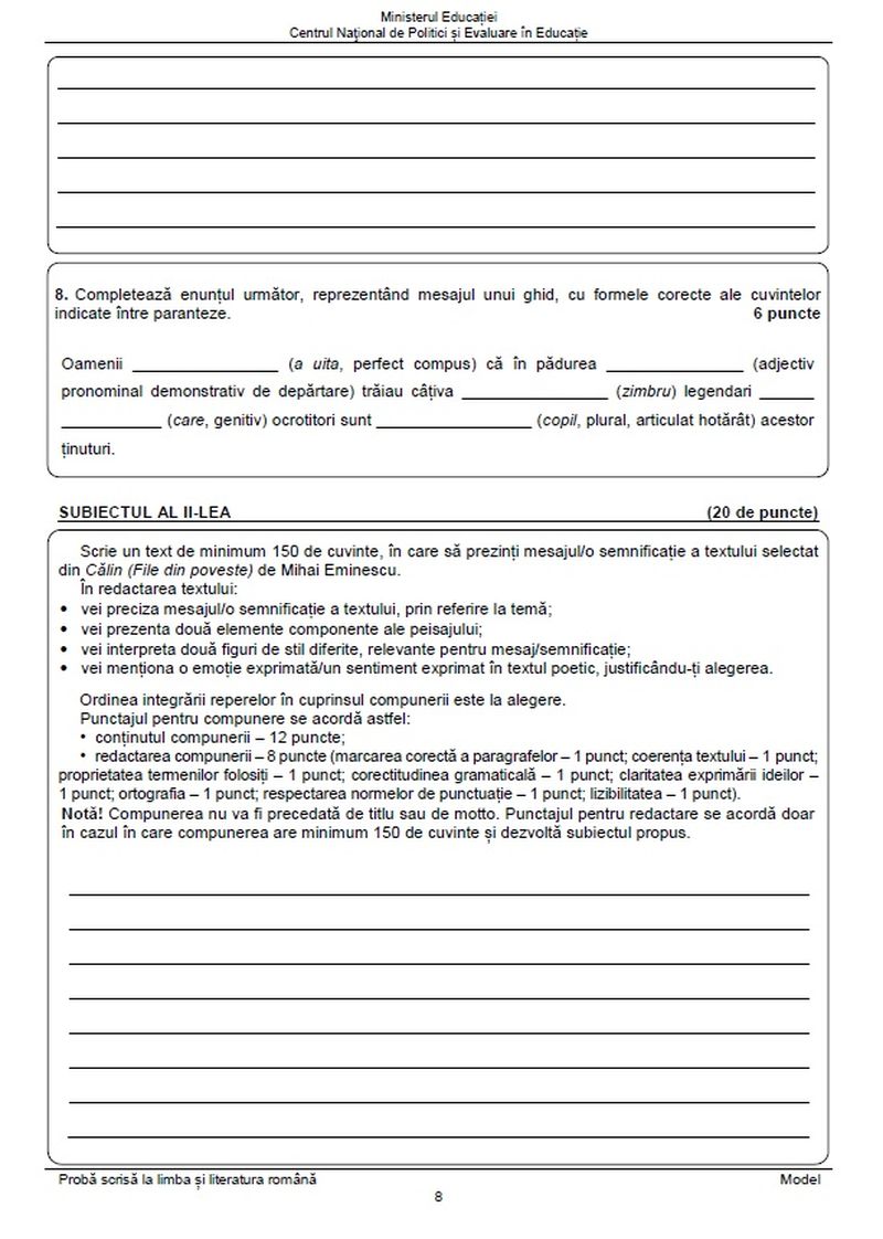 8 din 21 | Edu.ro Simulare Română Evaluare Națională 2023. Cum sunt punctate subiectele?