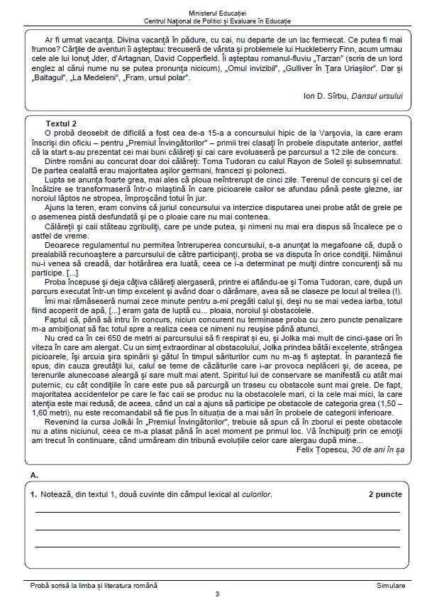 3 din 21 | Edu.ro Simulare Română Evaluare Națională 2023. Cum sunt punctate subiectele?