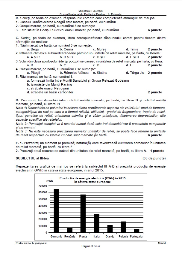 Iată câteva modele de subiecte pentru proba scrisă la Geografie din cadrul Examenului Național de Bacalaureat publicate pe edu.ro .