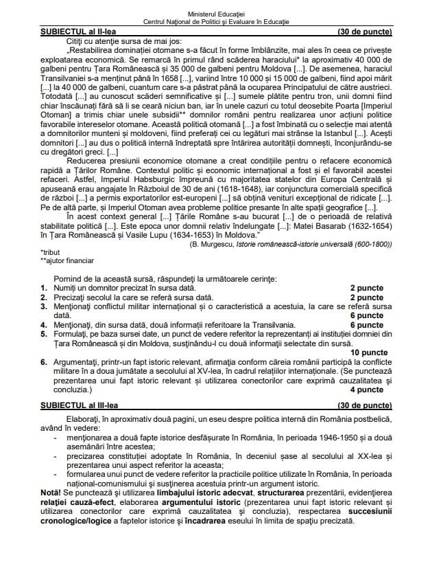 3 din 3 | EDU.ro Subiecte BAC 2022 Istorie. Ce ar putea pica anul acesta? Modele de subiecte