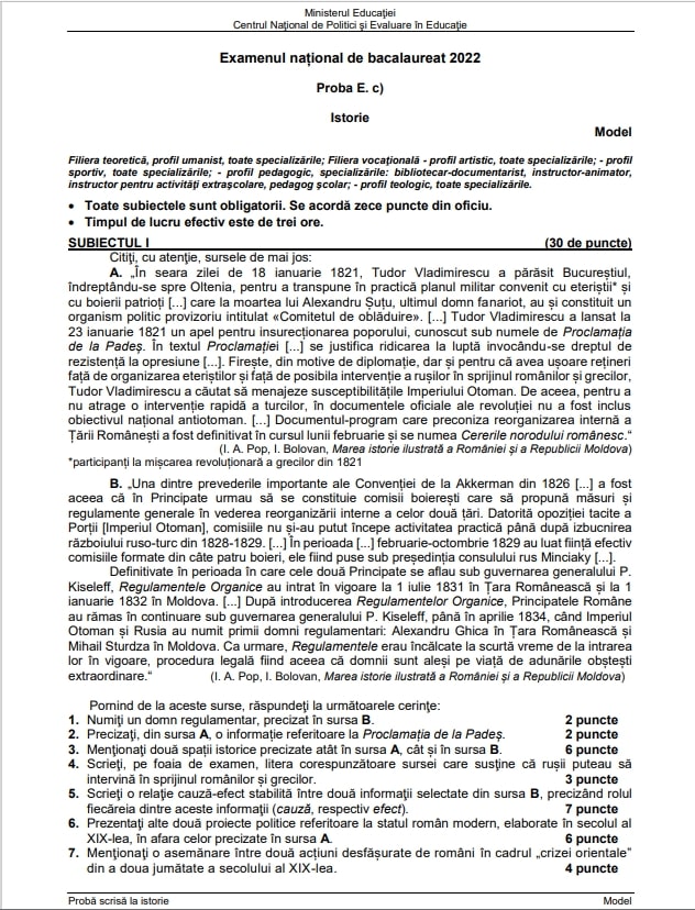 EDU.ro Subiecte BAC 2022 Istorie. Iată ce subiecte ar putea pica anul acesta la proba la Istorie din cadrul examenului de Bacalaureat 2022! Vezi cum arată noul model de subiecte!