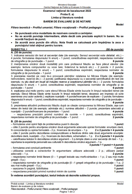 Citeste si: EDU.ro Subiecte BAC 2022 Biologie. Modele de subiecte pentru această probă