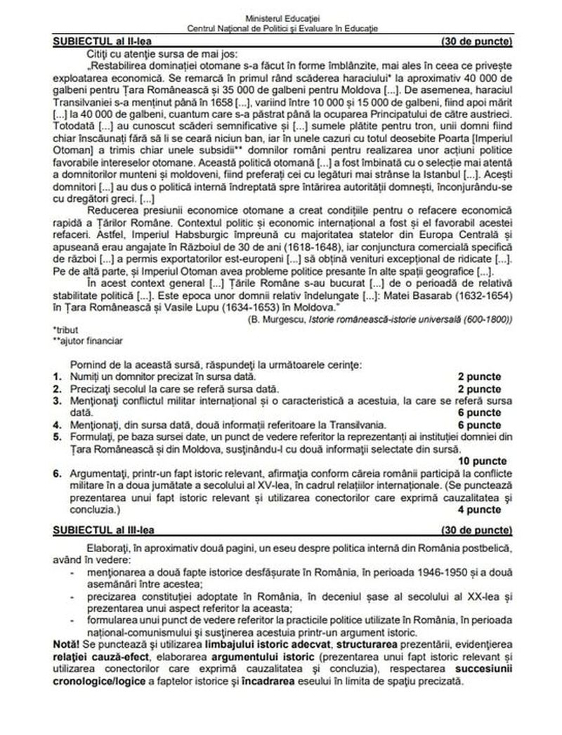Edu.ro Subiecte Istorie BAC 2022. Iată noile subiecte la istorie 2022 oferite de Ministerul Educației.
