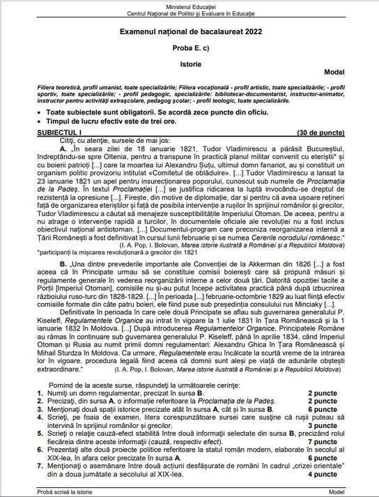 Iată ce modele a publicat Ministerul Educației pentru proba la Istorie din cadrul examenului de Bacalaureat 2022!