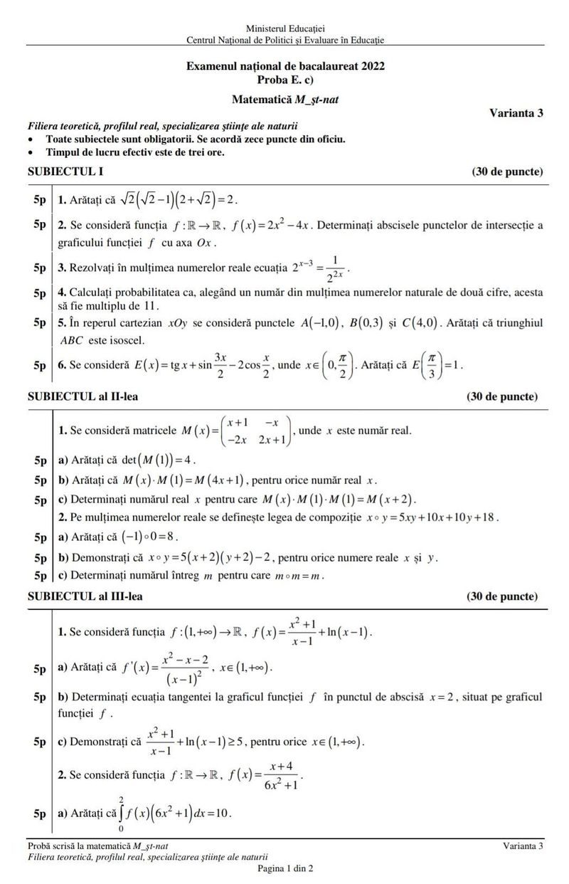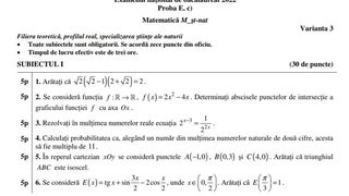 3 din 9 | Edu.ro Subiecte Matematică BAC 2022 pentru real, tehnologic şi ştiinţe ale naturii: Subiectele s-au deschis! Examenul începe la ora 09:00
