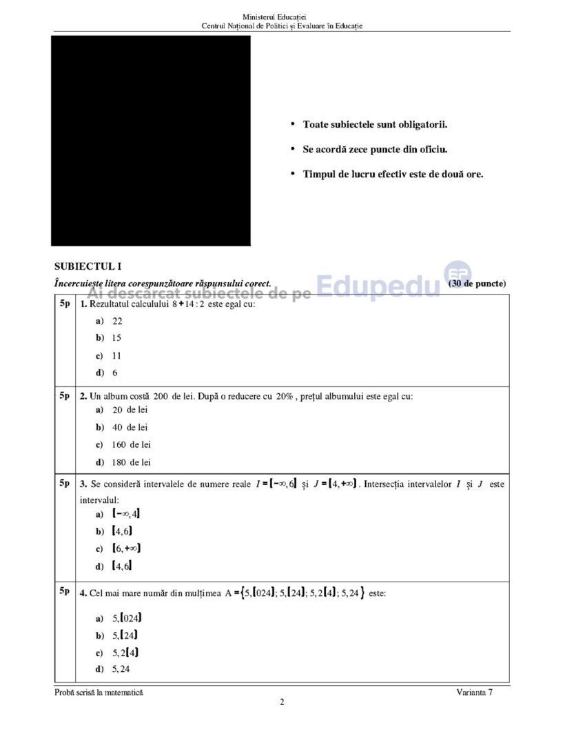 2 din 11 | Edu.ro Subiecte Matematică Evaluare Națională 2024